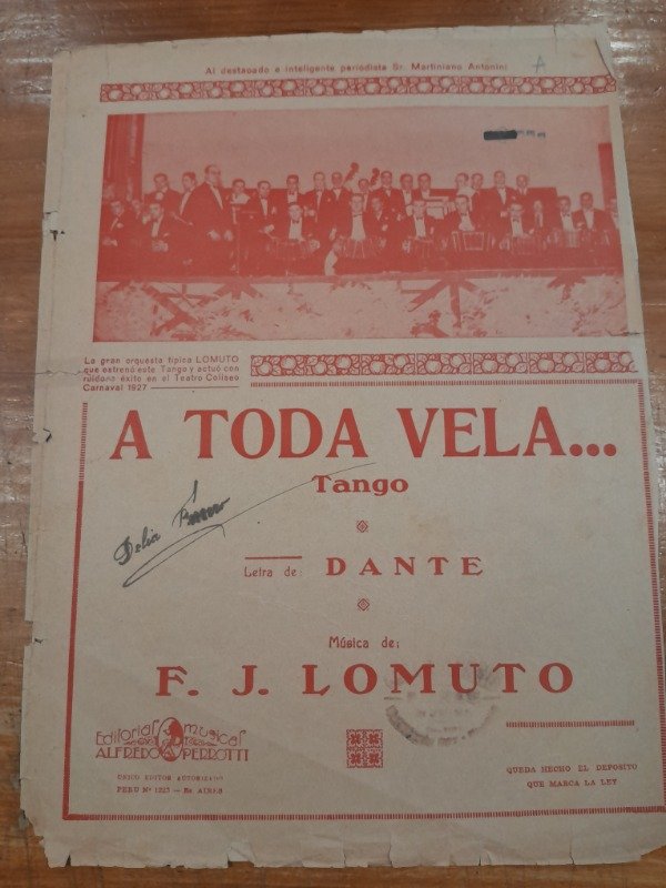 A toda Vela Tango Partitura - Dante Lomuto